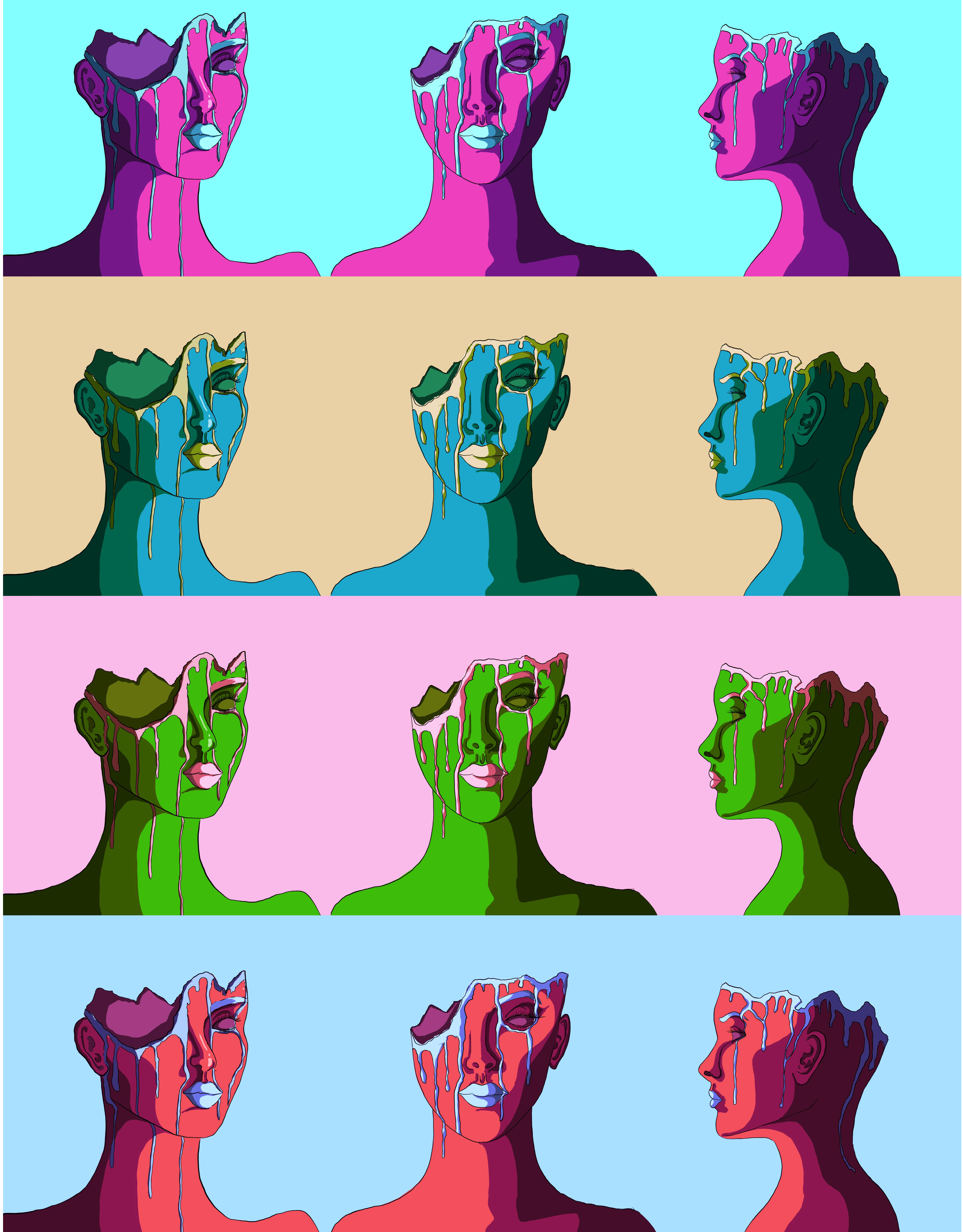 Pink in 8 different views. A commission by my colleague to be used as posters in his new pastel themed studio.
