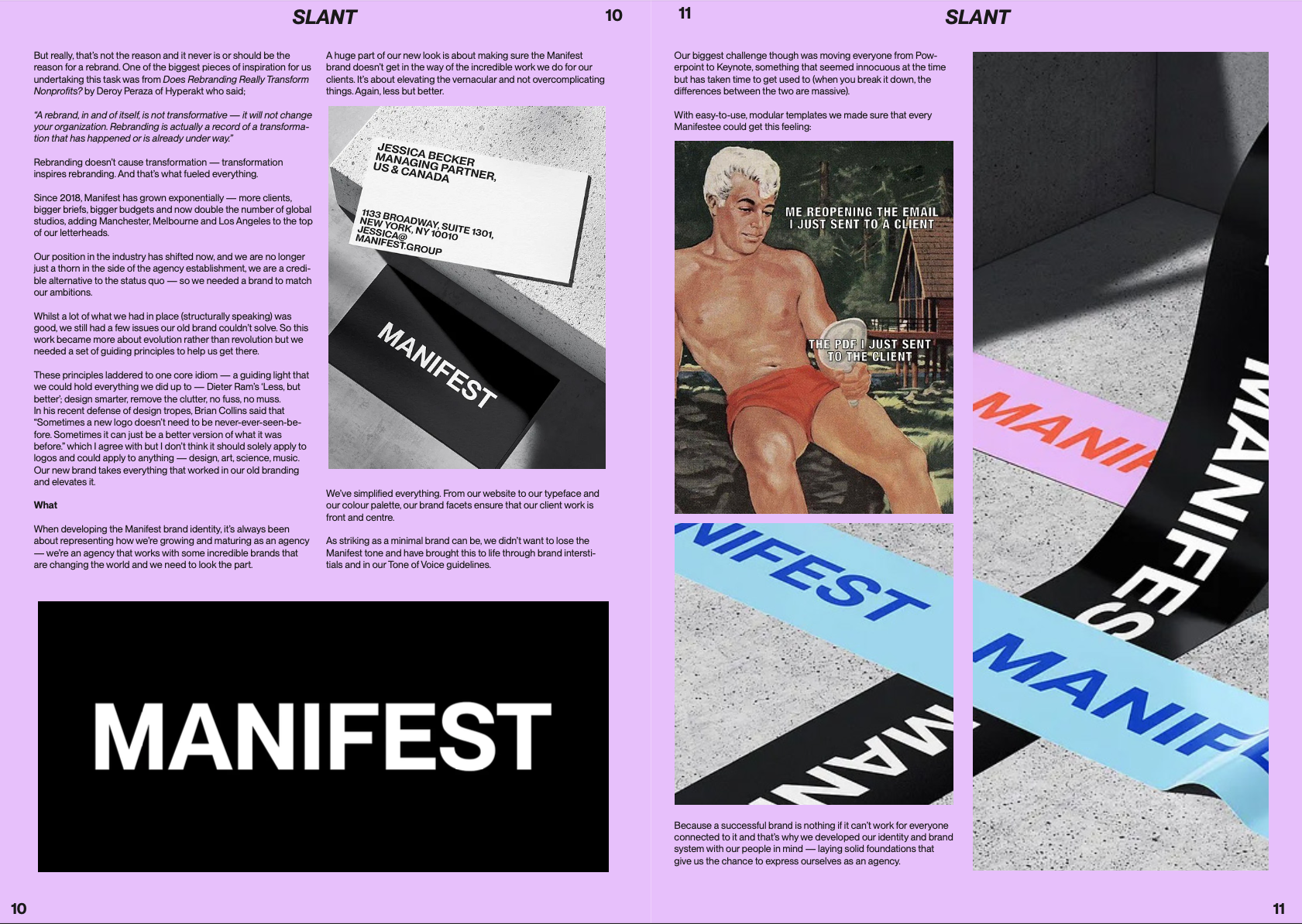 The Slant Annual was a magazine publication I worked on as part of a placement at Manifest, a branding agency in London.
